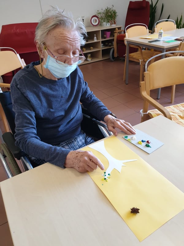 V malých skupinkách probíhá společenské setkávání klientů s aktivizačními pracovnicemi a Arteterapie pod odborným dohledem paní Žanety Zieglerové