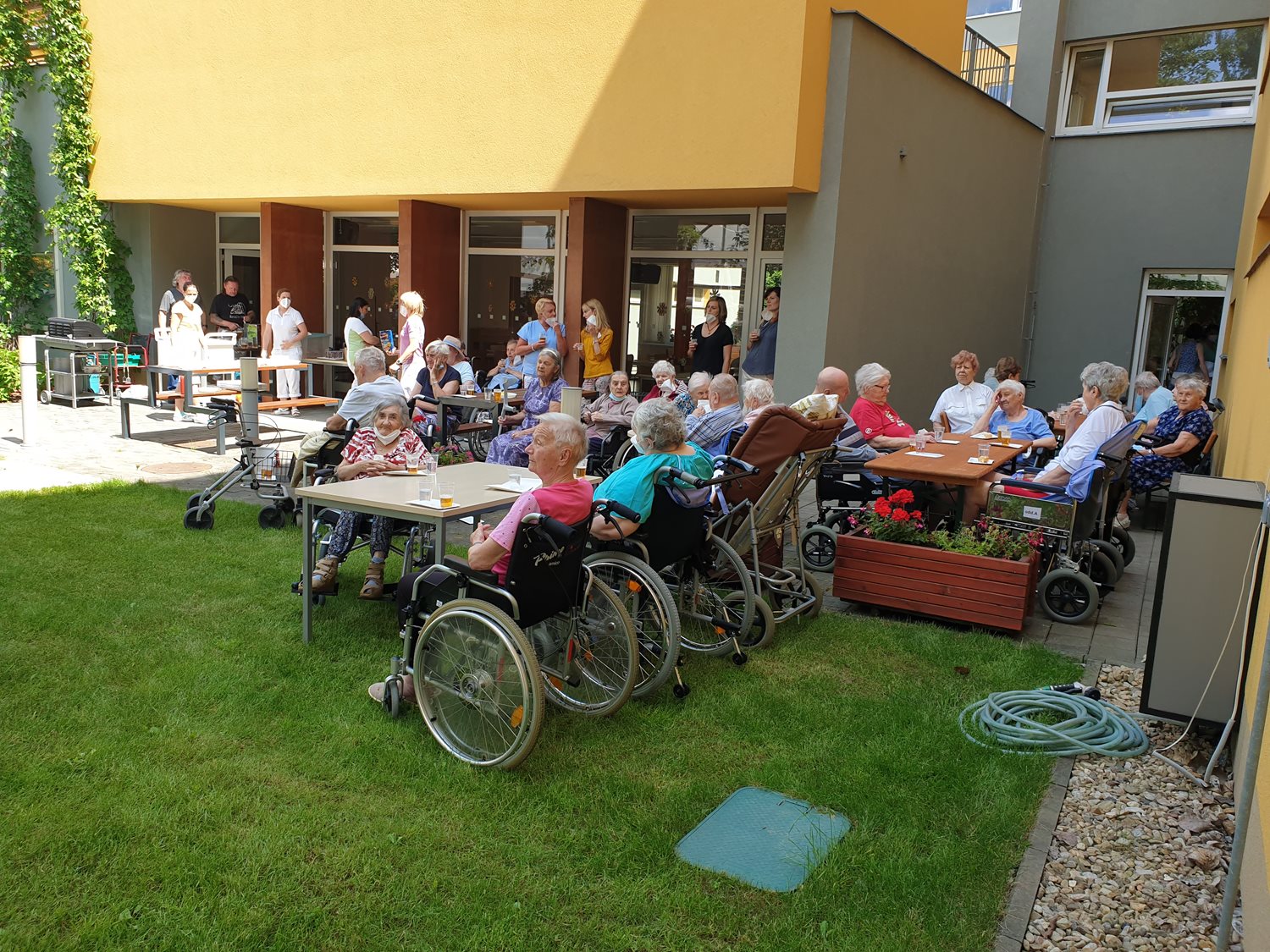 Dnešní odpolední posezení v Mezigenerační zahradě s občerstvením. Hudební doprovod v podání lidových písní kapely LH Za Oponou.