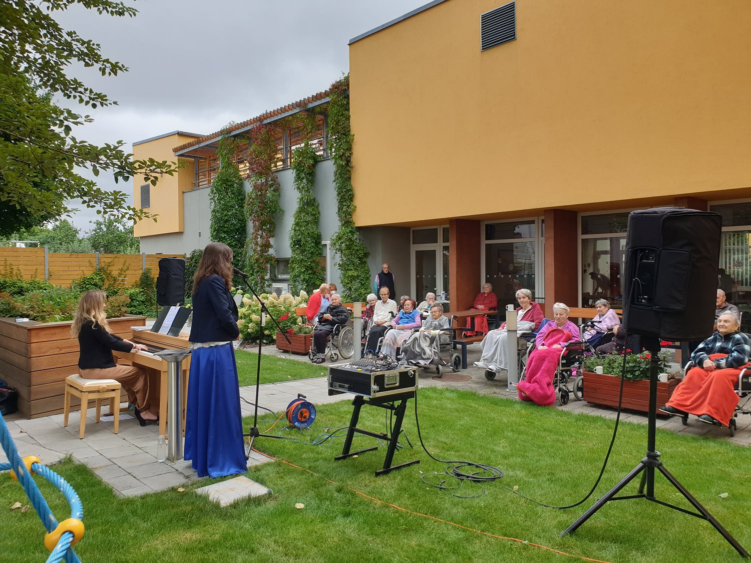 Dnešní koncert v Mezigenerační zahradě: Hudební duo Vážky: klavíristka Jana Nevoralová a zpěvačka Jana Cvejnová Velmi Vám děkujeme za Vaše vystoupení, které naše klienty moc potěšilo!