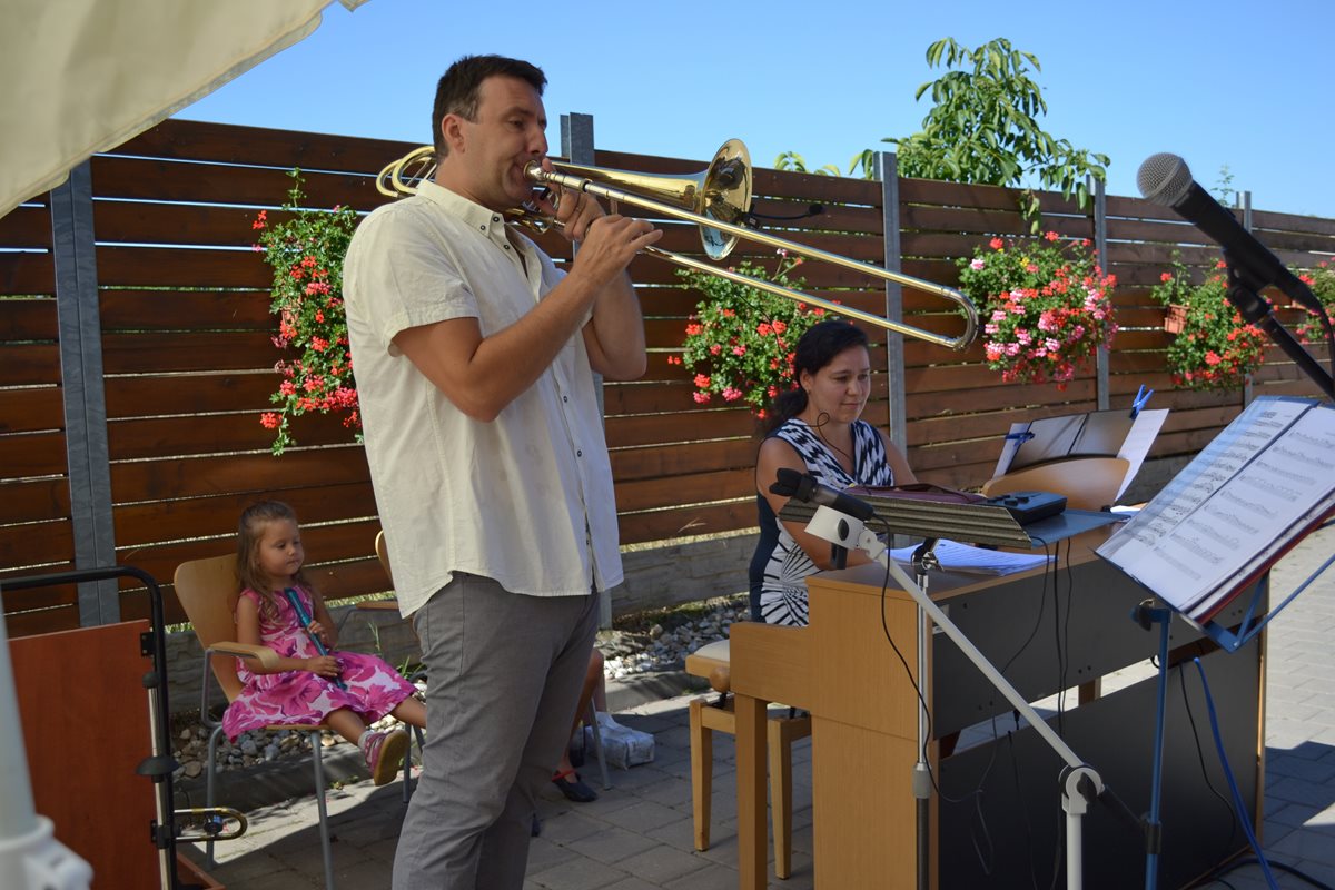 Jak si lépe užít léto než nádhernou tématickou hudbou se zaměřením na cestování Pod Okny našeho domova, kterou nám představila rodina Kozánkova. Naši klienti si mohli užít tóny z nejrůznějších koutů Evropy a poslechnout si klavír, flétny a pozoun.