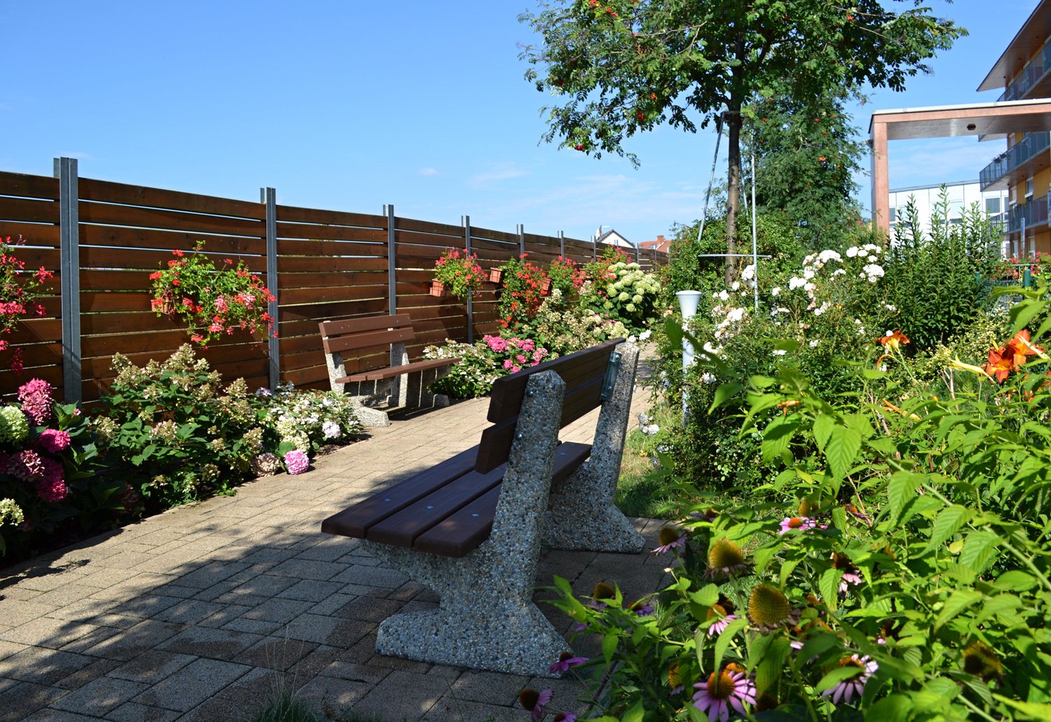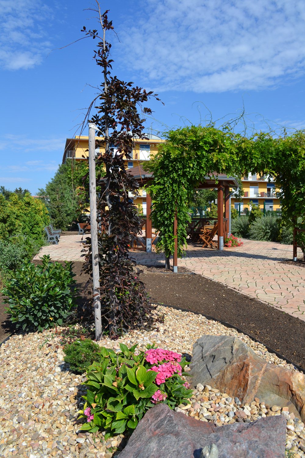 Cesta lemovaná květinami a lavičkami, která vede až k našemu novému vodnímu prvku. Tento prvek byl vybudován v měsíci červenci a stojí za prohlídku. O kousek dále zahradní altán ve stínu, skalky a ohniště.