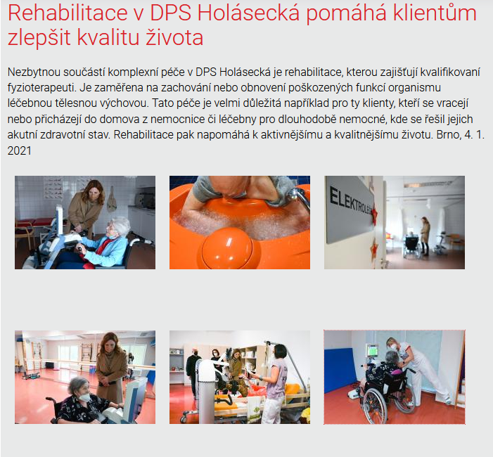Rehabilitaci vnímáme jako jednu z hlavních priorit, která napomáhá aktivnějšímu a kvalitnějšímu životu našich klientů. Zdroj: