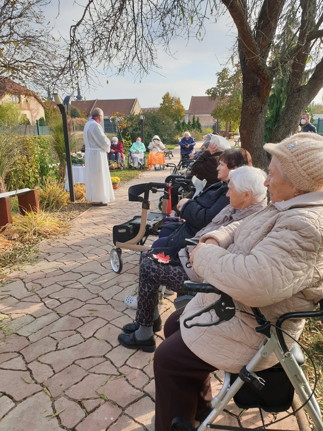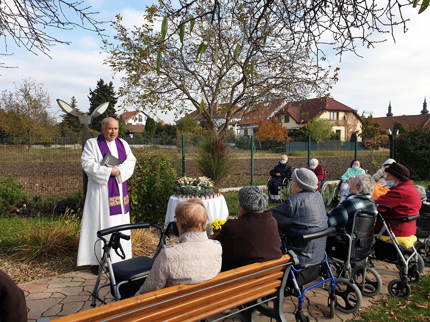 Mnoho našich klientů však nemá možnost, vzhledem ke své kondici a vzdálenosti, tuto tradici nadále udržovat. Právě z tohoto důvodu a s pomocí personálu měli klienti možnost zapálit svíčky pro své zesnulé blízké v naší zahradě...na místě, které je jako stvořené pro vzpomínání.
