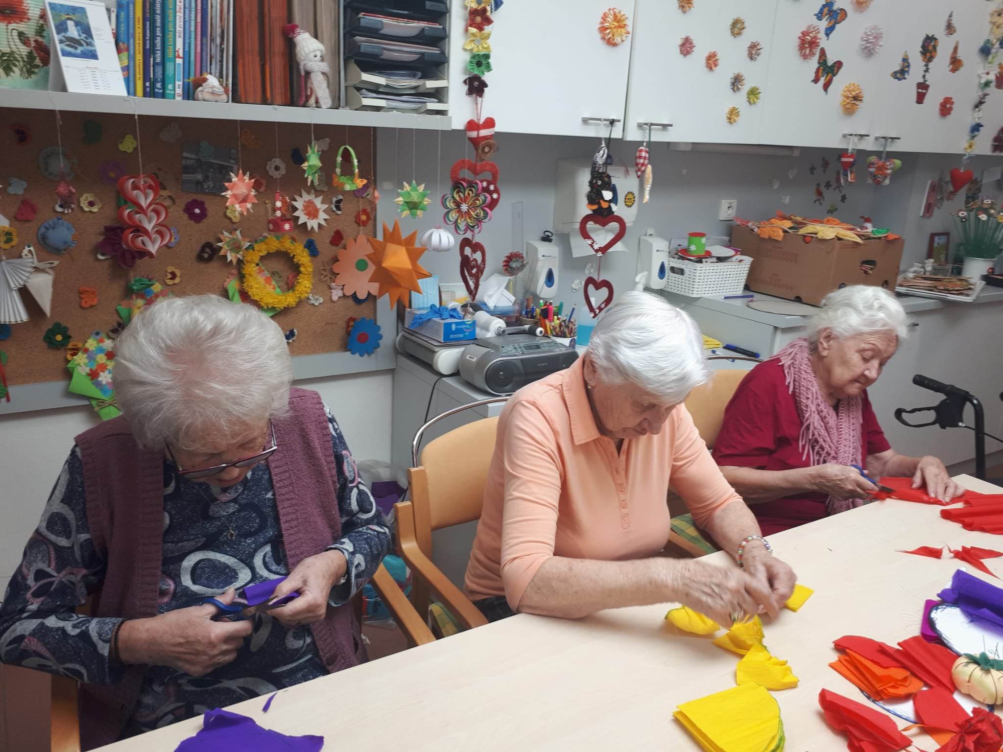 Ačkoliv to dnes venku vůbec nevypadá na jaro, v naší dílničce jsme si jaro vytvořili. Naše klientky vyráběly krásné jarní dekorace. A protože se venku někdy pořádně zatáhne svítíme si lampou s denním světlem. Jedná se o tzv. Terapii denním světlem - nejenže je krásně vidět na práci ale denní světlo má pozitivní vliv na naši psychiku. Lampy pro světelnou terapii umí díky navození umělého slunečního záření povzbudit naši psychiku, zkvalitnit nám spánek a v neposlední řadě nás zbaví stresu a úzkosti.