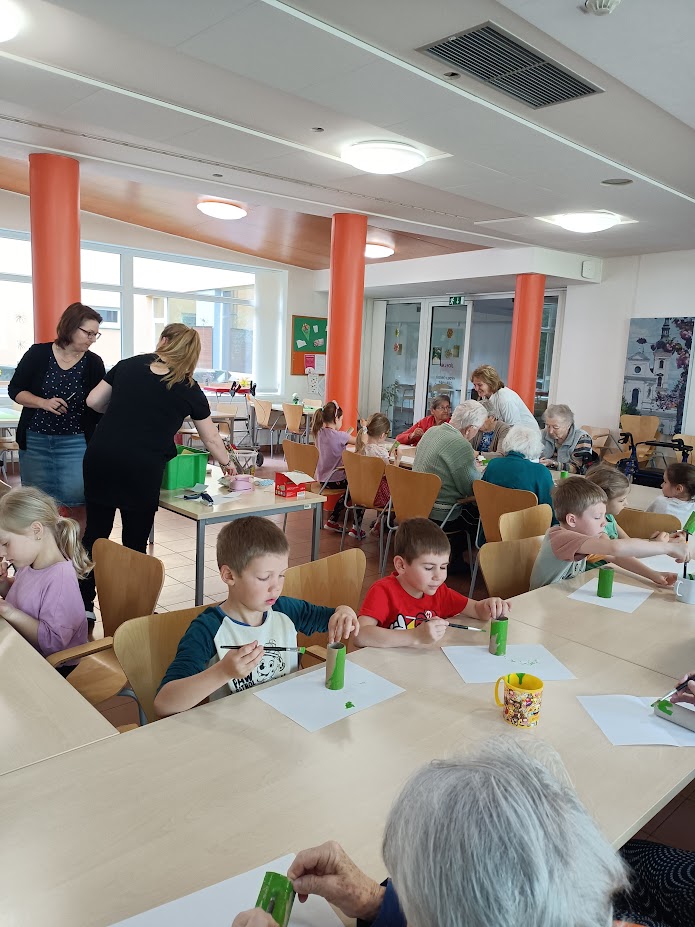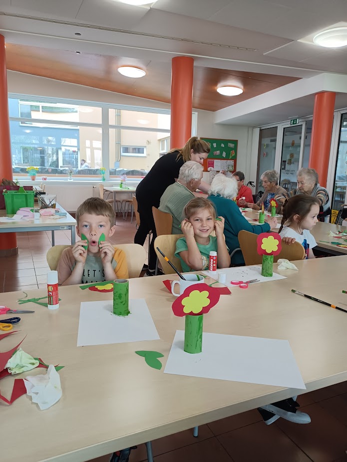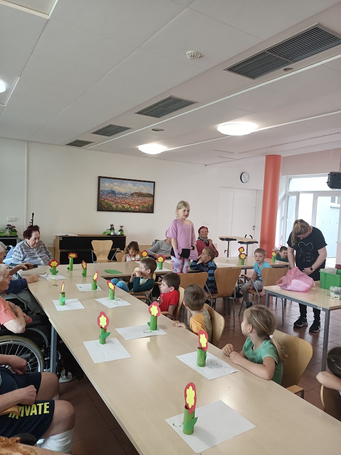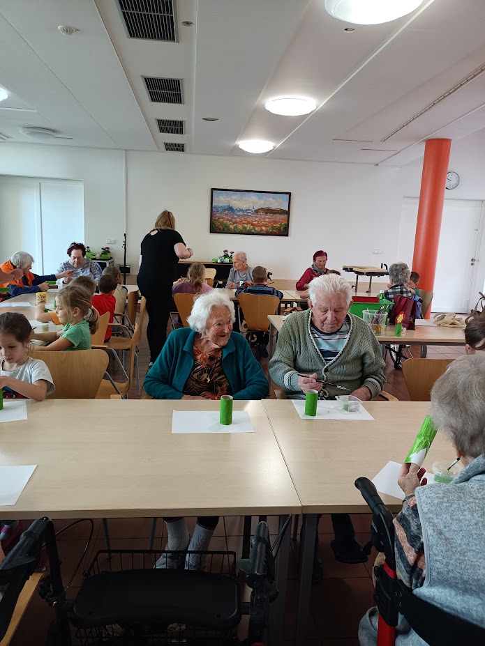 Nový týden jsme zahájili společným jarním tvořením. Již tradičně nás navštívily děti ze sousední Mateřské školy a společně s našimi klienty vyráběly papírovou jarní květinku. Nechybělo také čtení pohádek a přednes básniček a jarních písniček. Bylo to moc příjemné setkání naplněné úsměvy a radostí ze společně stráveného času