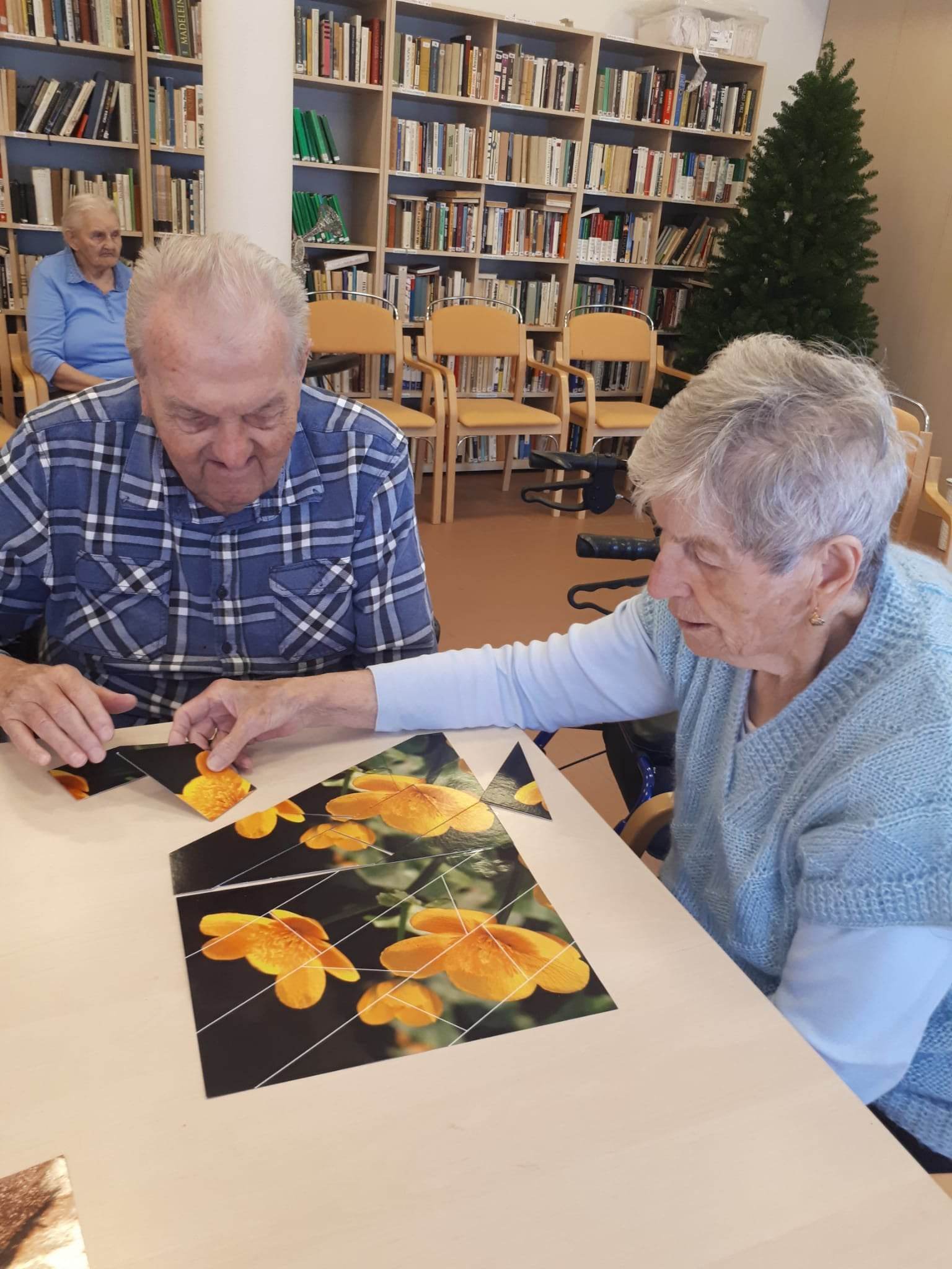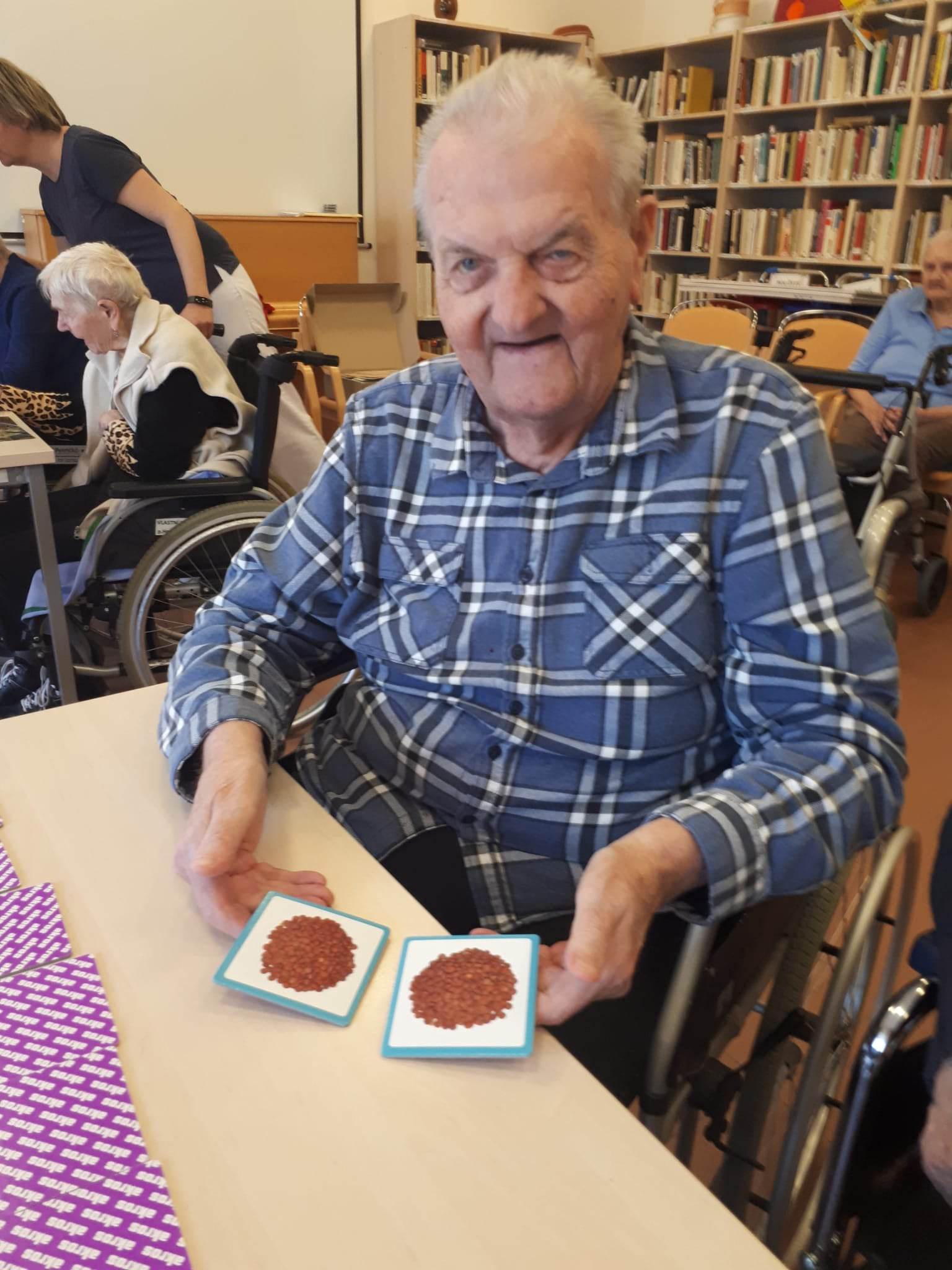 Každý den kromě středy, kdy se koná muzikoterapie, si mohli naši klienti vyzkoušet různé sportovní aktivity. Zaházet si míčkem na koš, šipkami na terč, skládat puzzle, pexeso, zahrát člověče nezlob se. Jsme moc rádi, že je o sportovní aktivity, které od dubna naše aktivizační pracovnice organizují, mezi klienty zájem.