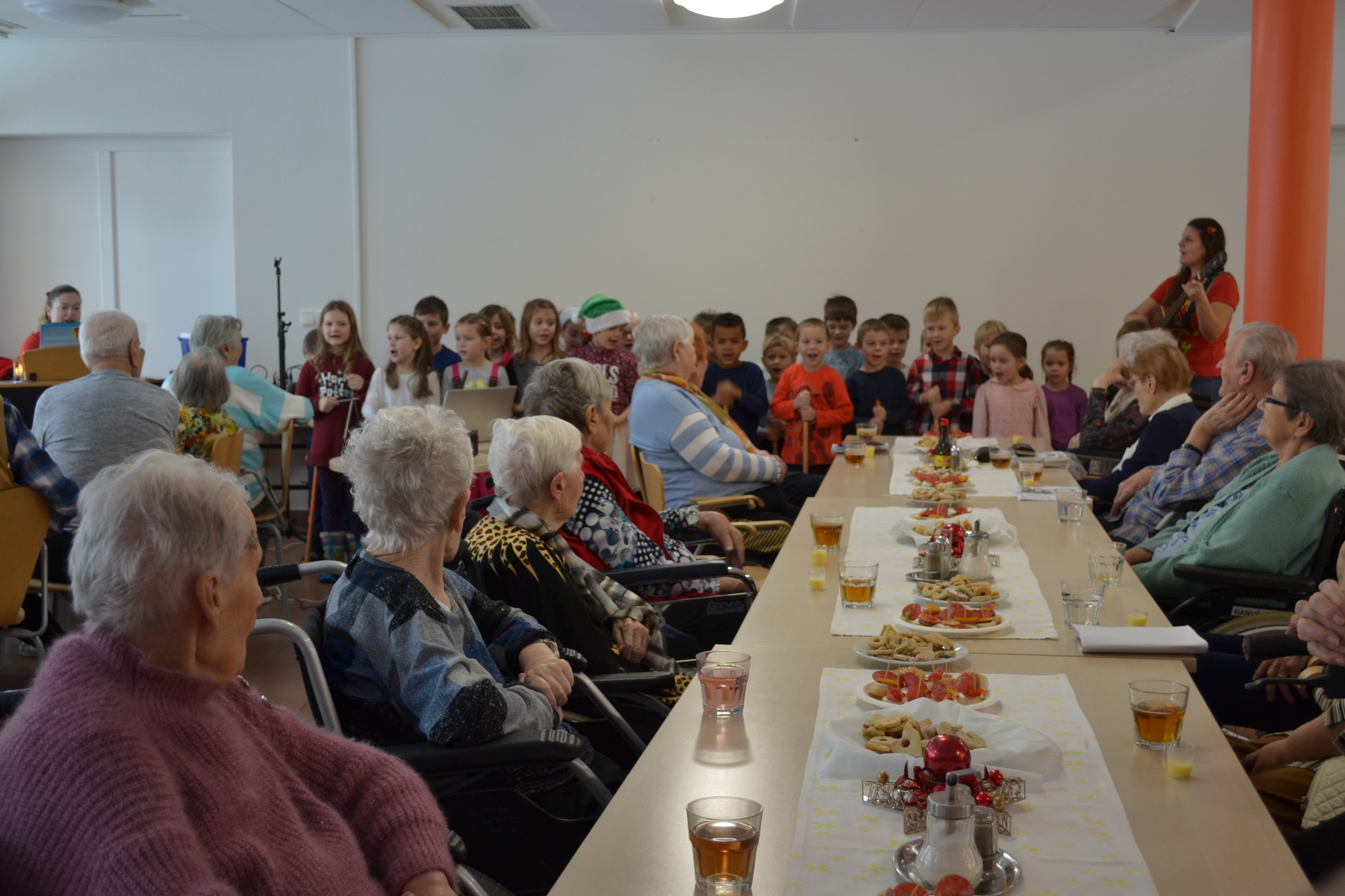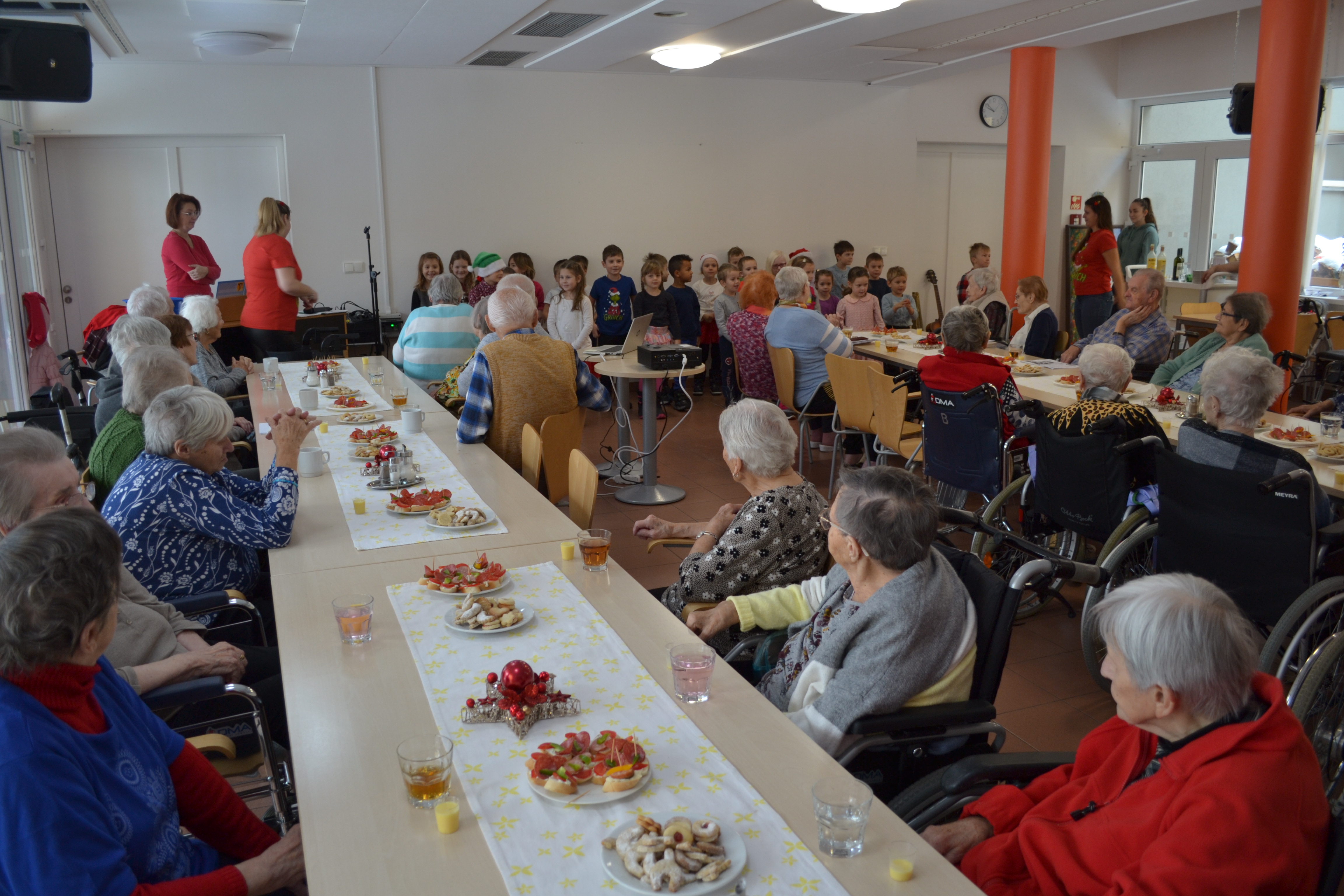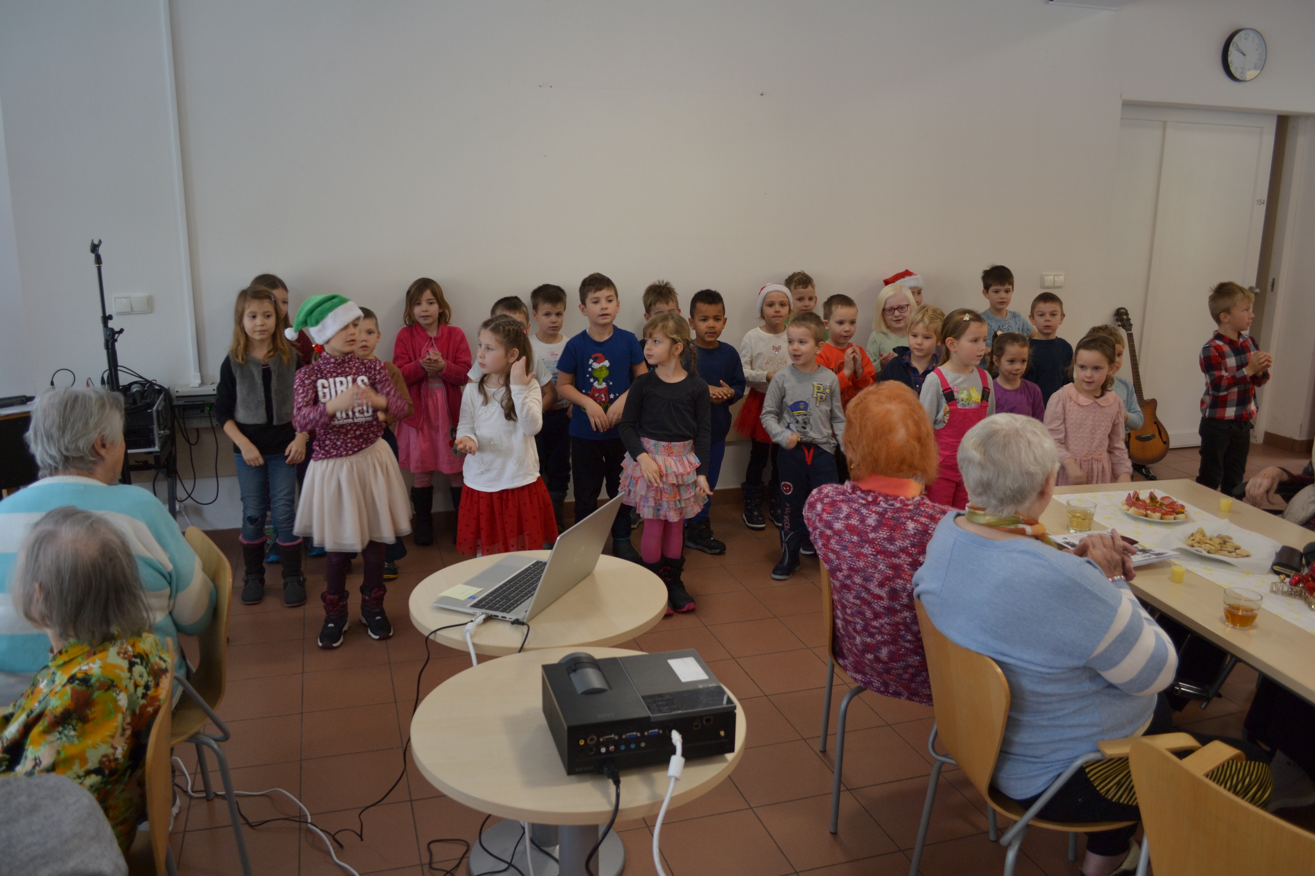 Děti nám za organizace pedagogů zazpívaly, za tancovaly a zahrály na hudební nástroje. Úsměvy dětí vykouzlily úsměv i na naši tváři.