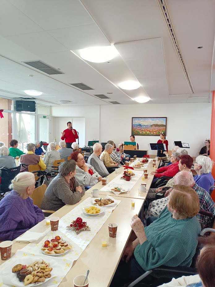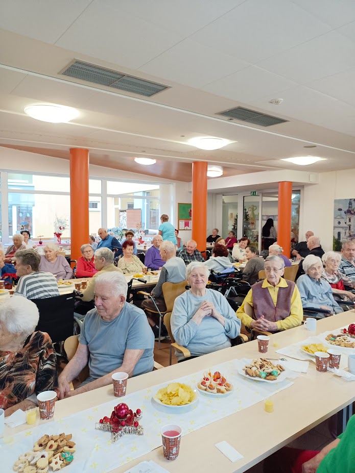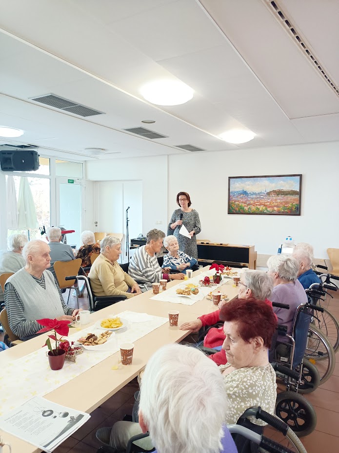 Slavnostní atmosféru podpořilo bohaté občerstvení, které si každý mohl vychutnat podle své chuti. Paní ředitelka četla vybraná vánoční přání, která si naši klienti mohli vložit do schránky Ježíškovi. K tomu nám představila našeho nového kamaráda – robota Robina, který bude k dipozici našim klientům.