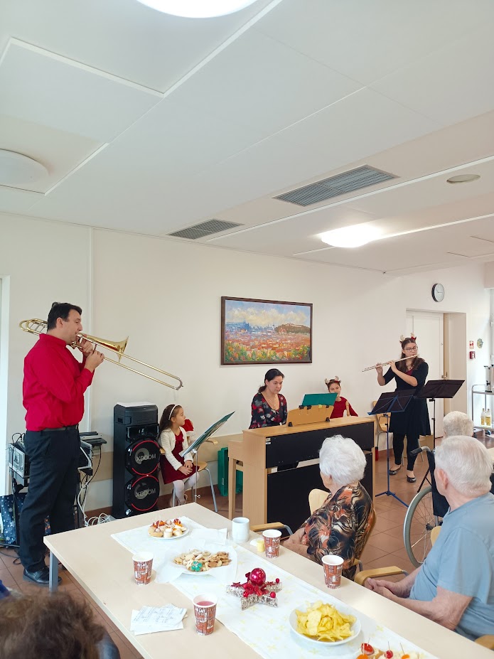 V úterý 17. prosince jsme pro naše klienty, jako každý rok, připravili vánoční besídku, která přinesla spoustu radosti a pohody. Programem nás provázela hudební rodina Kozánkova, která zahrála a zazpívala vánoční písně a koledy v osobitém podání. Nechyběla ani Julie, pětiletá členka rodiny, která svým zpěvem, hrou na klavír a triangl přidala do programu kouzelný nádech