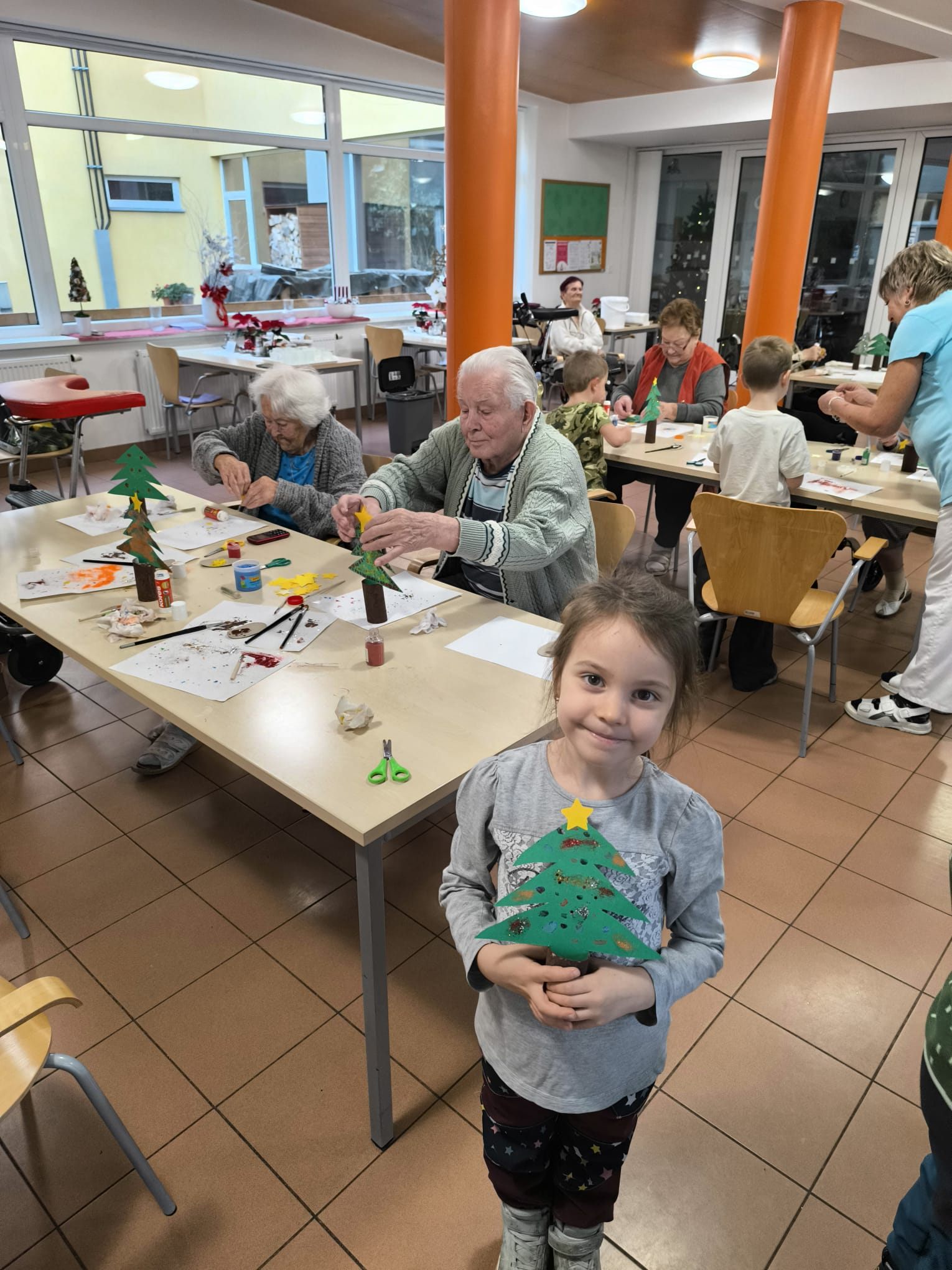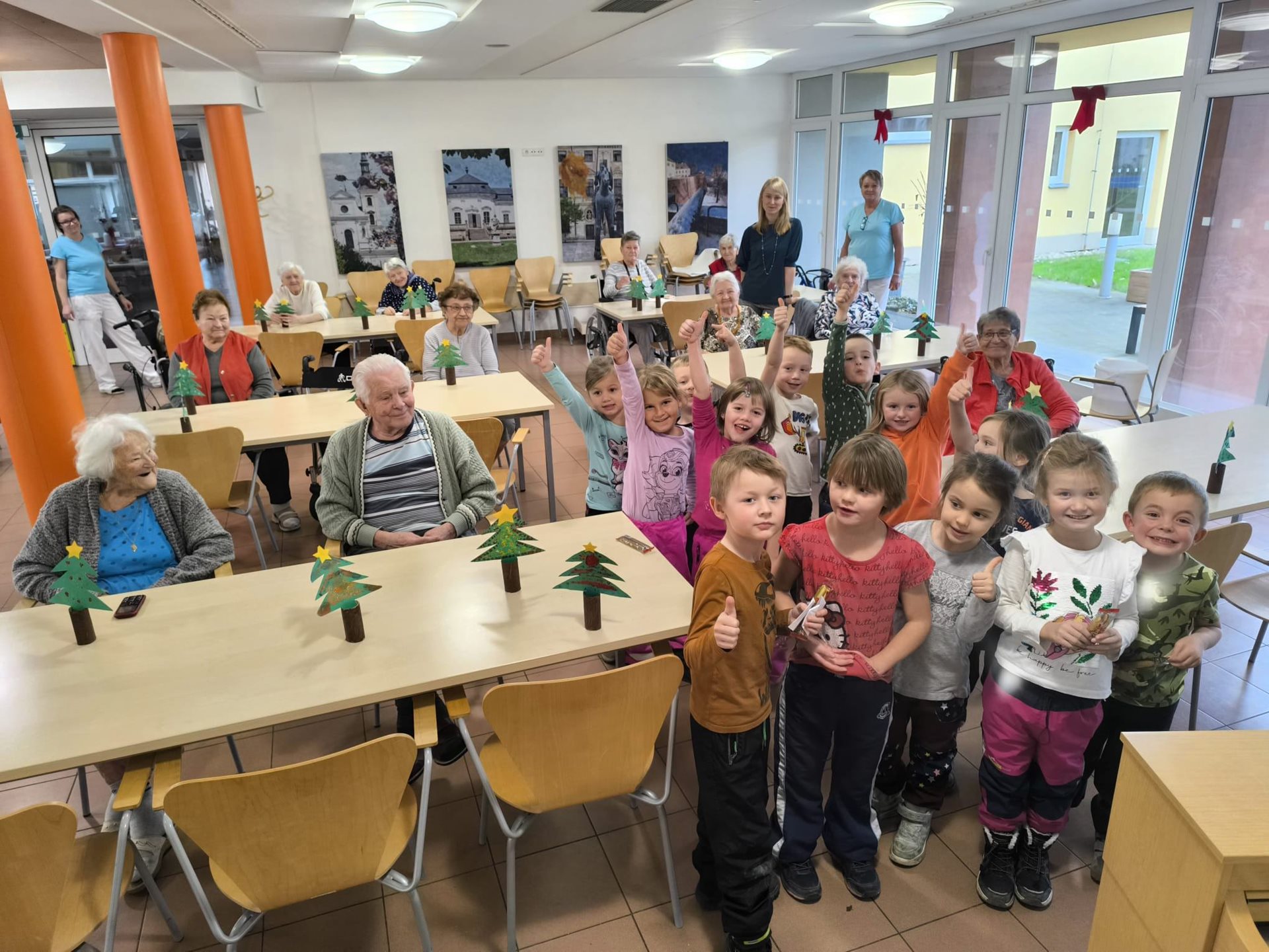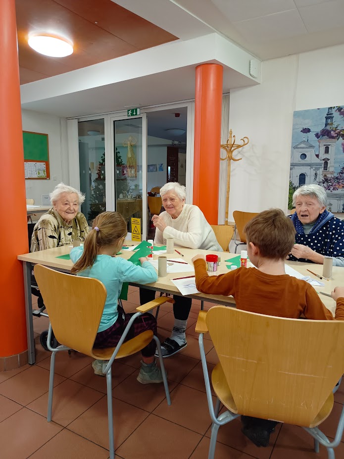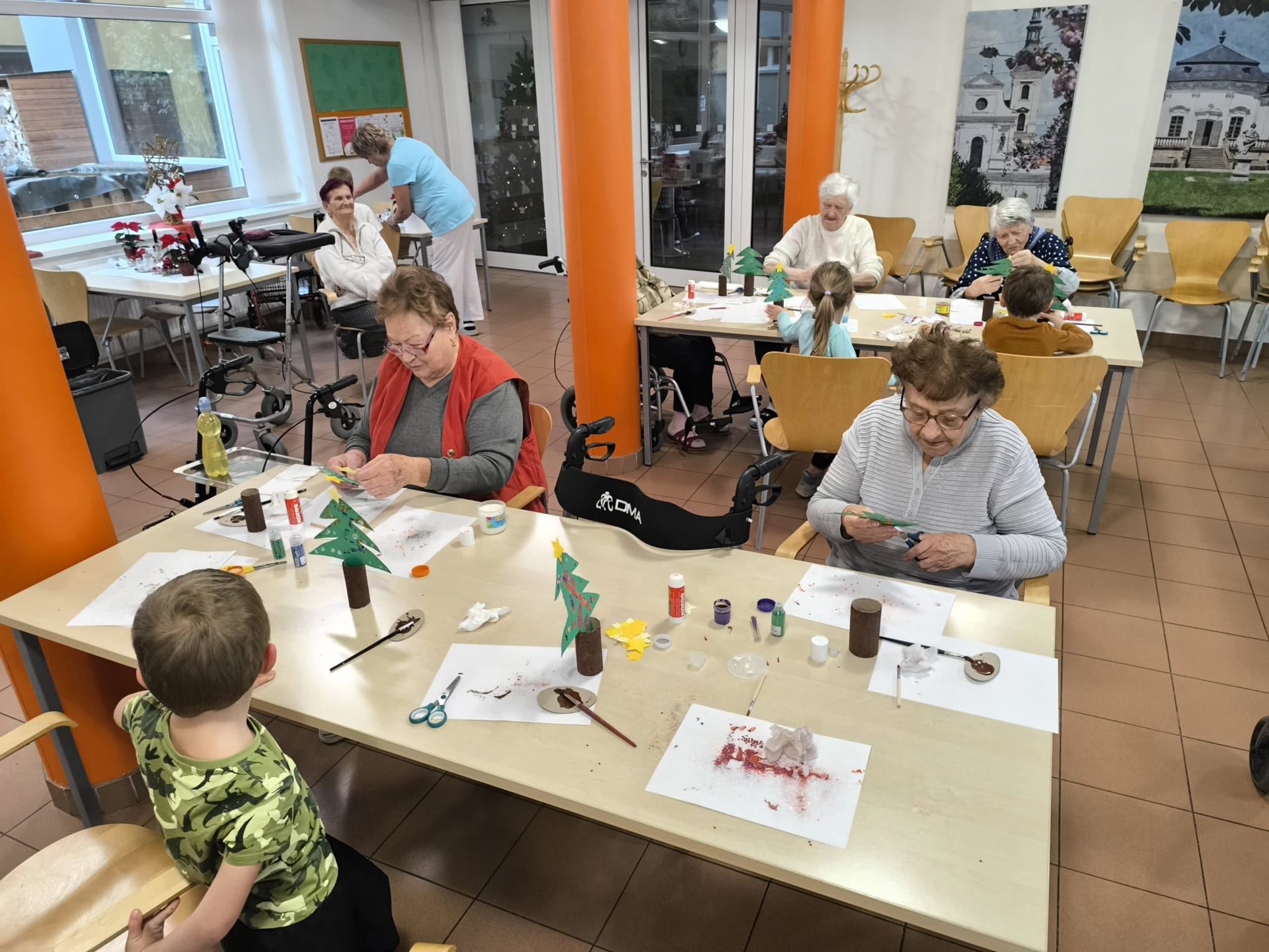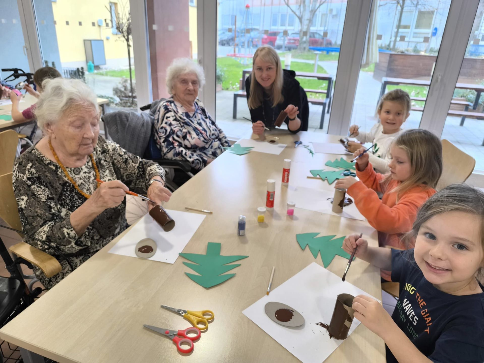 Předvánoční čas v našem domově je plný radosti a společných chvil, kdy se setkáváme na koncertech, vystoupeních a tvořivých dílnách. Ve středu 4. prosince jsme měli tu čest strávit krásný čas s dětmi ze sousední mateřské školy, se kterými jsme společně vyráběli vánoční stromeček. Na závěr nás potěšily koledy, které děti zazpívaly s nadšením. Byl to čas plný úsměvů a radosti. Mezigenerační spolupráce je pro nás velmi důležitá a smysluplná – spojuje nás a vytváří nezapomenutelné vzpomínky.